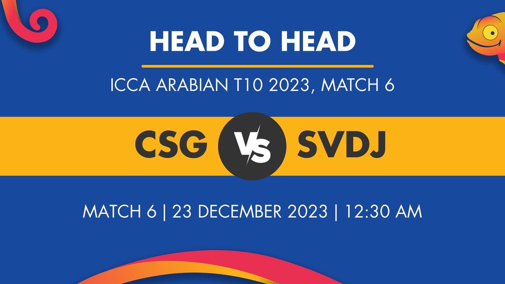 CSG vs SVDJ Player Stats, ICCA Arabian T10 2023, Match 6 - Who Will Win Today’s Match Between CSS Group and Seven Districts Juniors. CSS Group and Seven Districts Juniors will go head to head against each other on December 23 (Saturday) 12:30 AM IST. CSG vs SVDJ will take place at the ICC Academy, Dubai.