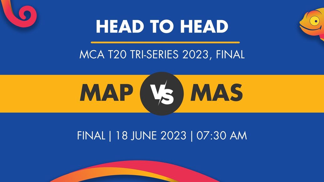 MAP vs MAS Player Stats, MCA T20 Tri-Series 2023, Final - Who Will Win Today’s Match Between MCA President XI and MCA Secretary XI. MCA President XI and MCA Secretary XI will go head to head against each other on June 18 (Sunday) 7:30 AM IST. MAP vs MAS will take place at the YSD-UKM Cricket Oval, Bangi.
